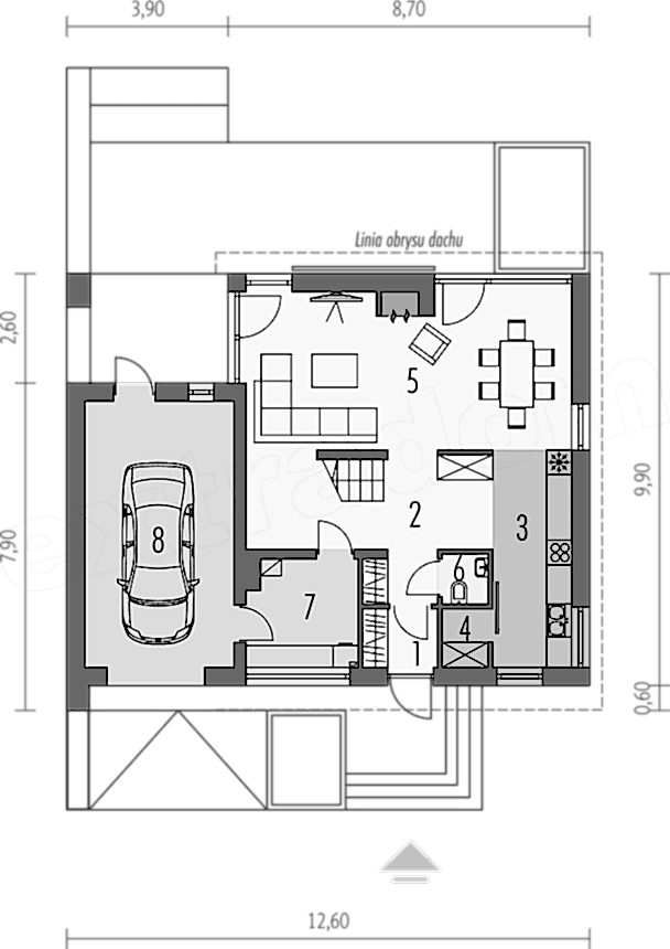 • Дом имеет длину 9 и ширину 12 метров.